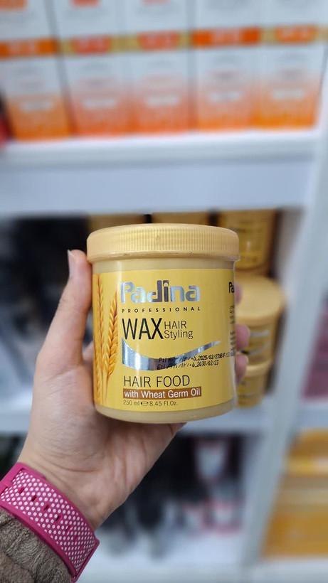 واکس موی پادینا حاوی روغن جوانه گندم حالت دهنده و تقویت کننده مو افزایش براقیت مو مقاوم در برابر رطوبت و عوامل محیطی